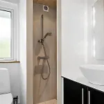 Oh172-Hadsund-Solbaerhaven-25 Villa has an equipped kitchen plus an electric kettle, a refrigerator, and an oven in it. This property is a short way from café Oster Hurup Bowlingcenter.